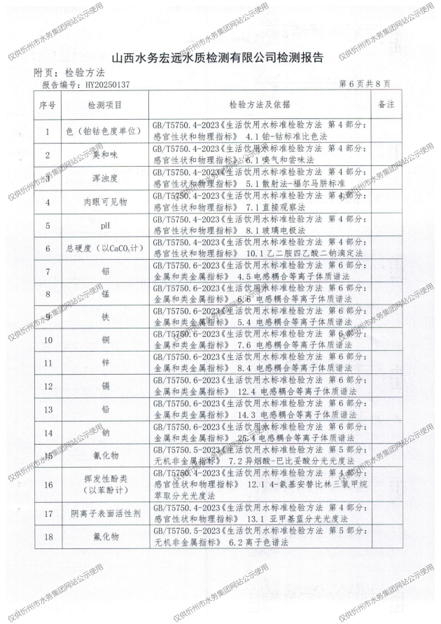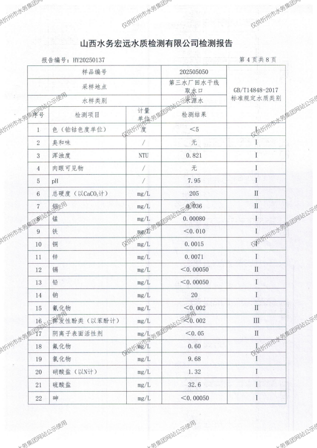 忻州城區公共供水水源水、出廠水、管網水、管網末梢水2025年5月份水質信息公示