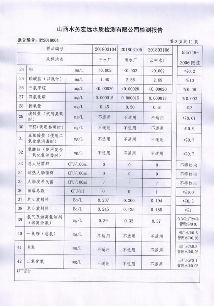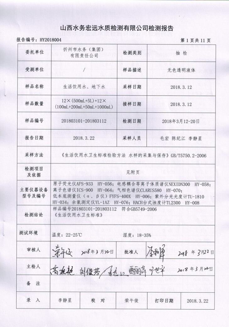 忻州城區公共供水水源水、出廠水、管網水、管網末梢水2018年3月份水質信息公示