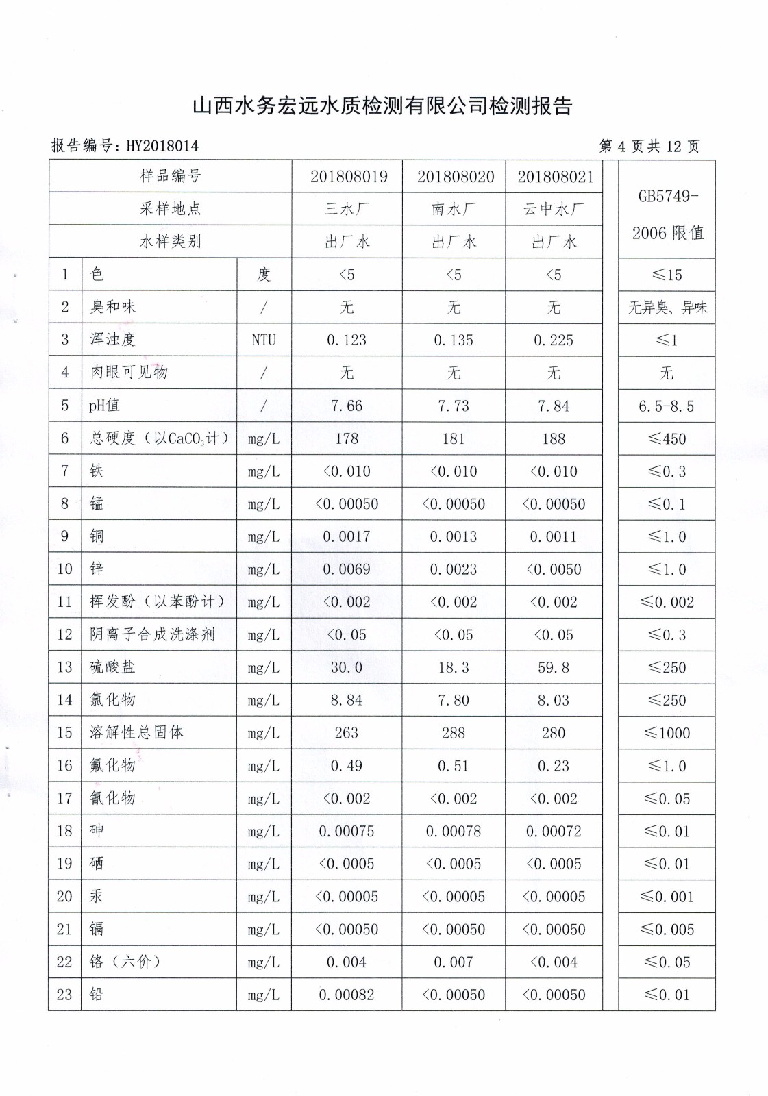 忻州城區公共供水水源水、出廠水、管網水、管網末梢水2018年8月份水質信息公示