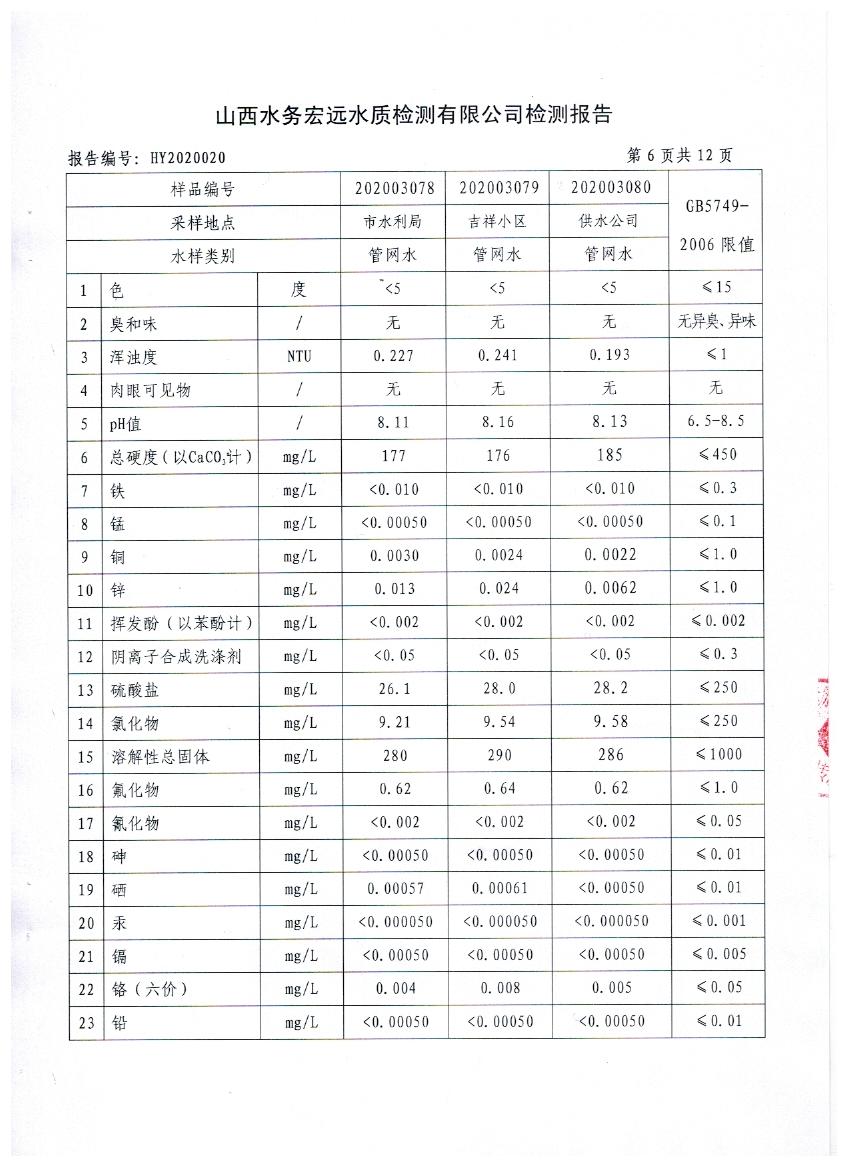 忻州城區公共供水水源水、出廠水、管網水、管網末梢水2020年3月份水質信息公示