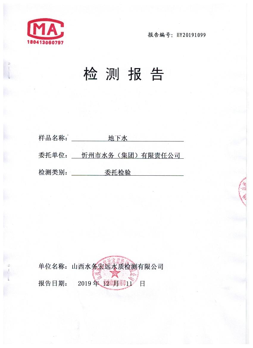 2019年忻州城區公共供水南水廠、三水廠水源水39項地下水水質全分析