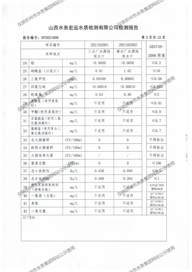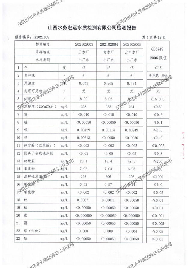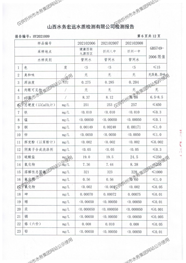 忻州城區公共供水水源水、出廠水、管網水、管網末梢水2021年2月份水質信息公示